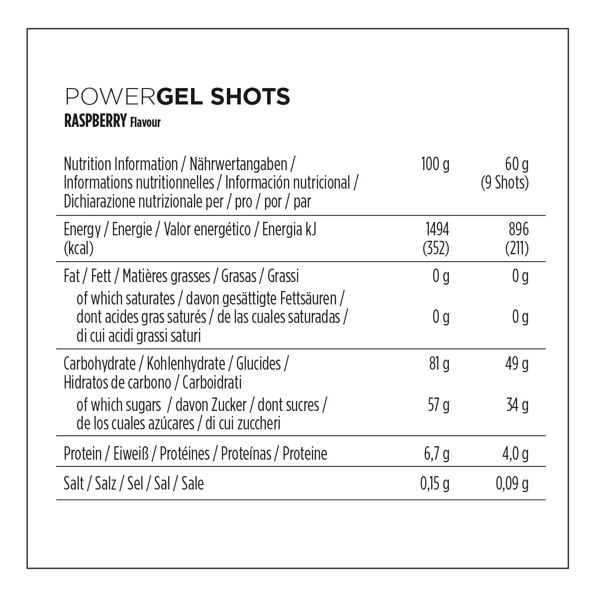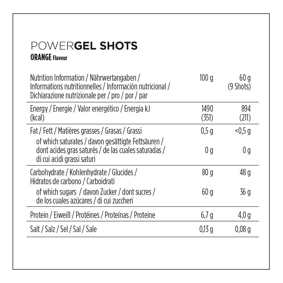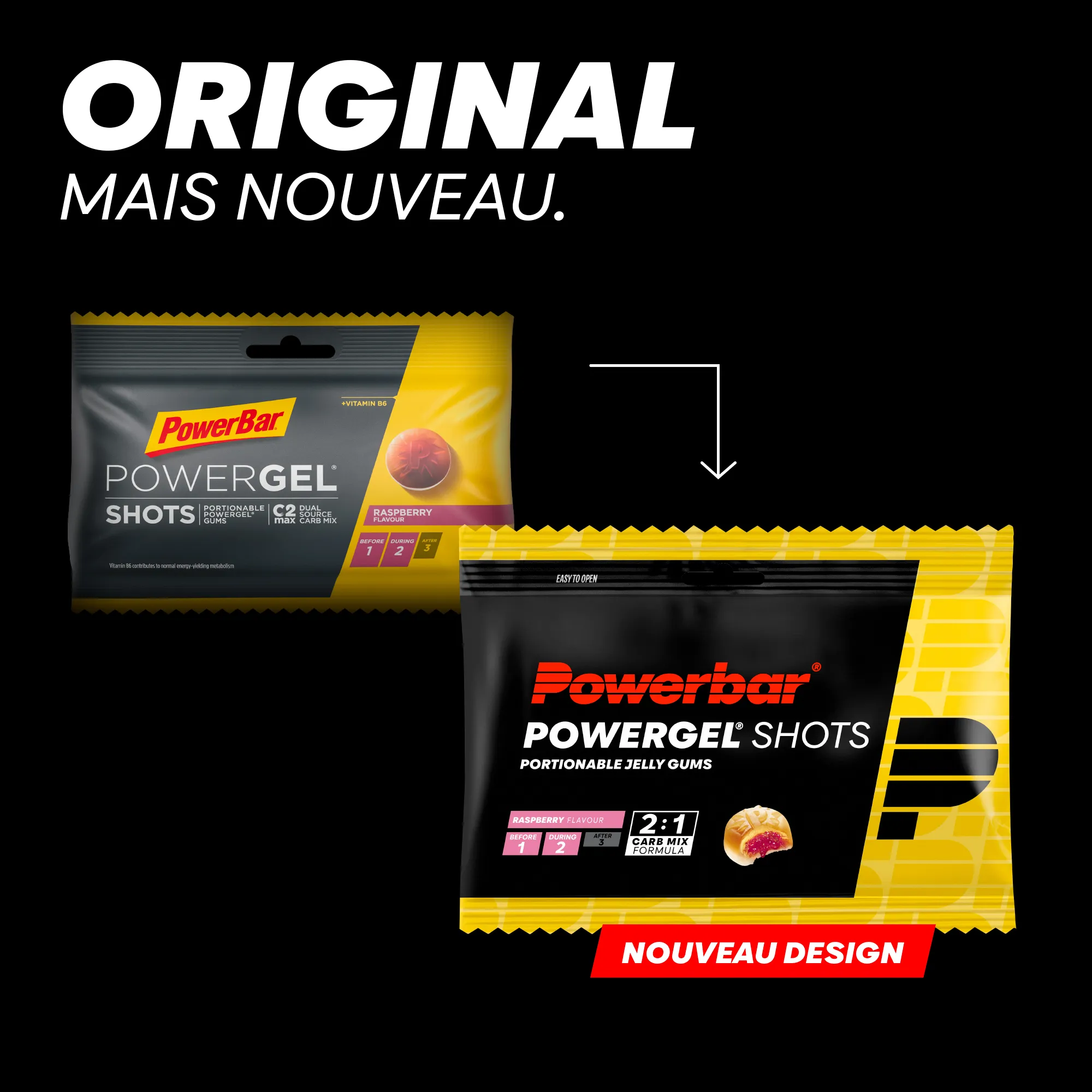 - Les 5 SHOTS apportent la même proportion de glucides qu’1 PowerGel®