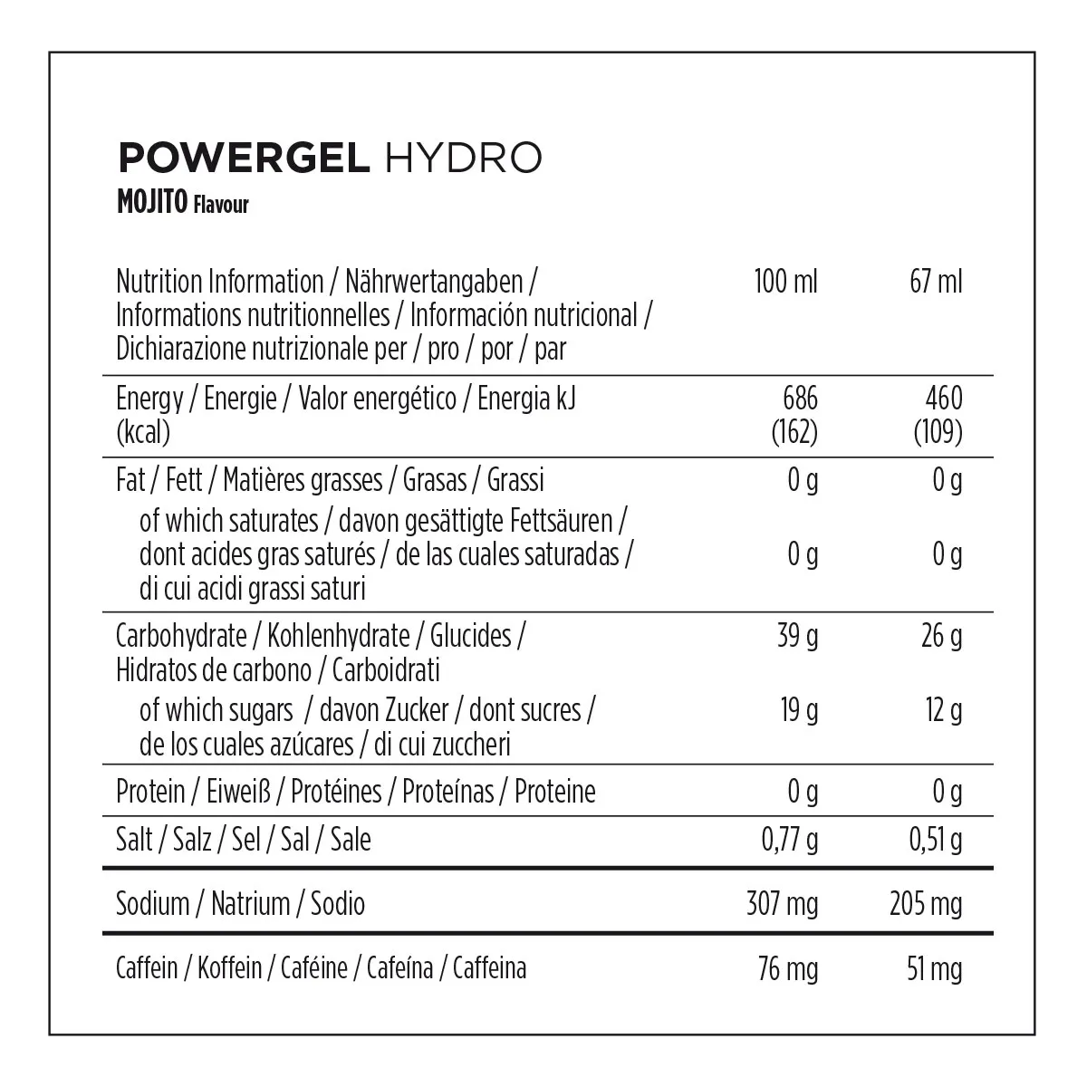 Les PowerGels Hydro Powerbar sont proposés sous 4 différentes saveurs : Cerise caféine, Cola, Mojito et orange.