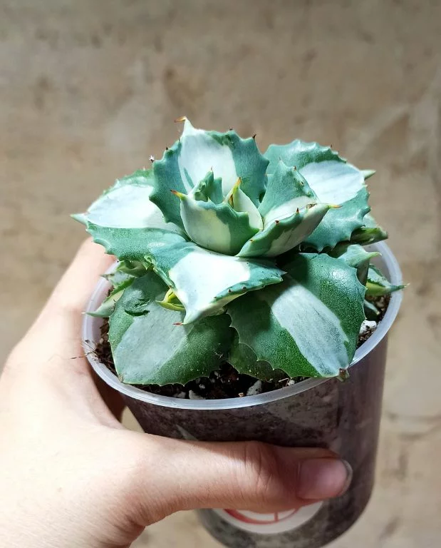 Surnommée parfois « le joyau du désert », l’Agave Ohi-Raijin Shiro Nakafu Variegata possède une anecdote fascinante. Selon une légende, elle était considérée comme sacrée par certaines cultures autochtones, croyant qu’elle était la protectrice des sources d’eau dans les déserts arides.