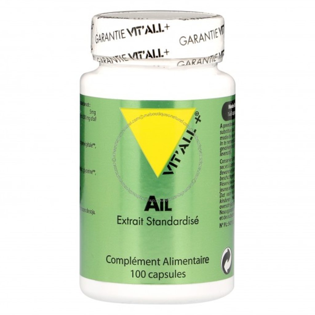 Extrait standardisé désodorisé super concentré d’ail, équivalent à 1 g d’ail frais par capsule.