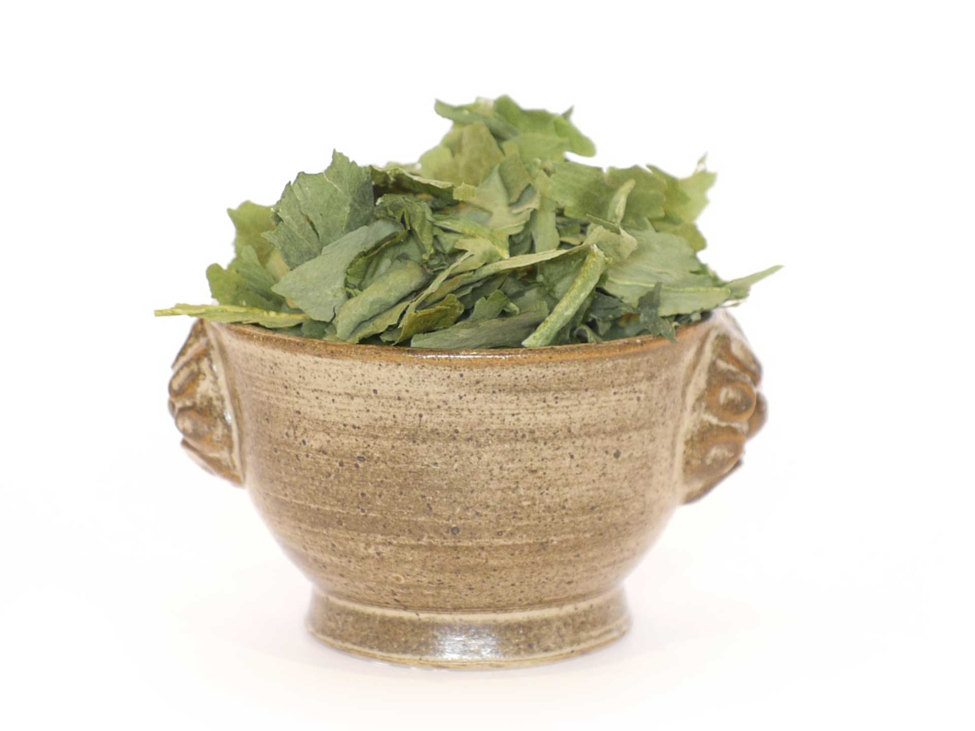 Forme : coupée, feuilles fines et froisées en fragments de taille hétérogène