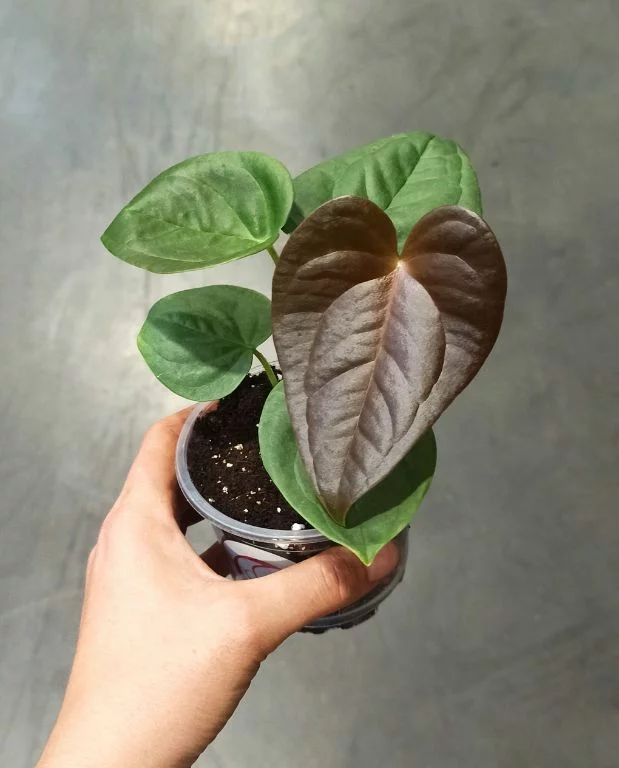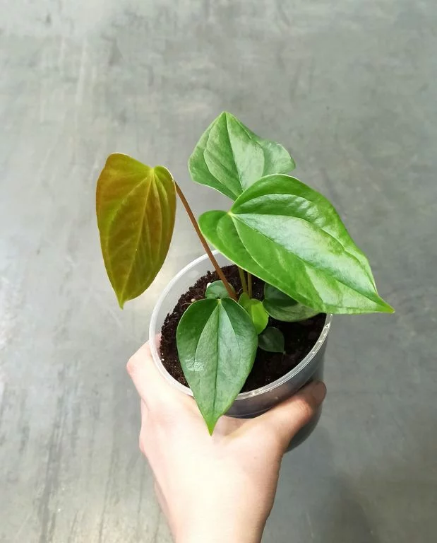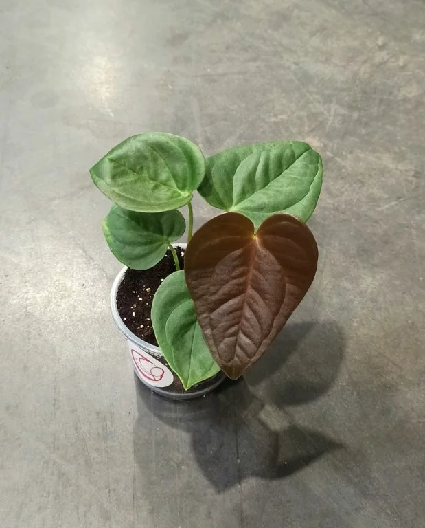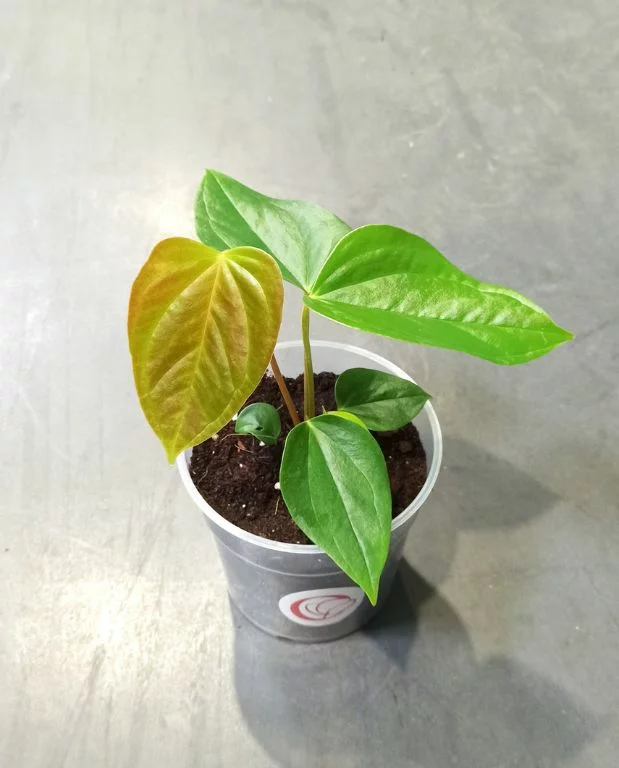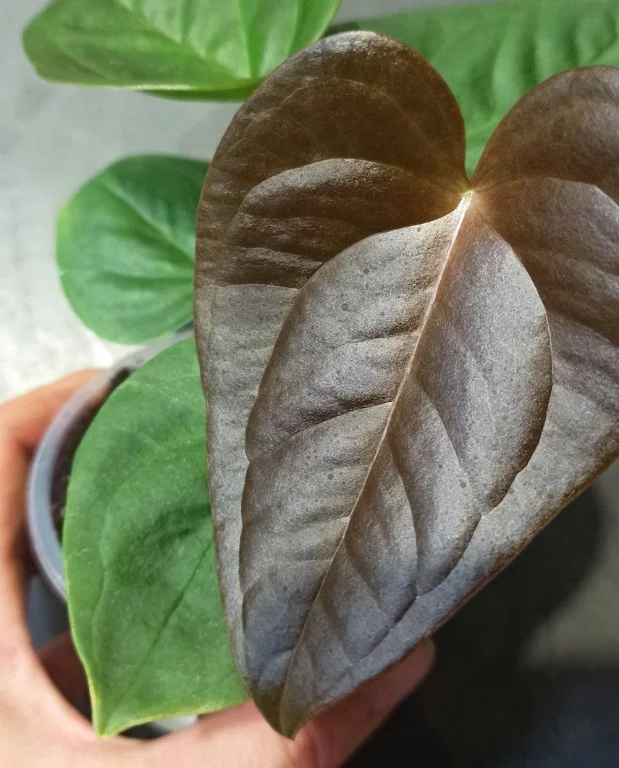 L’Anthurium Chamberlainii présente un feuillage exceptionnel, qui évolue au fil du temps. Durant sa période juvénile, ses feuilles sont d’un bordeaux intense, puis elles vont progressivement évoluer vers un vert émeraude profond. En plus de leur couleur exceptionnelle, ses feuilles coriaces peuvent atteindre 1 mètre de long.