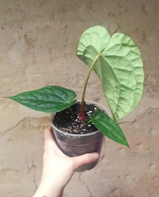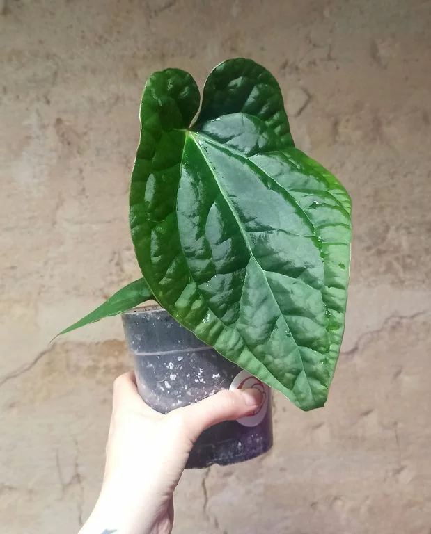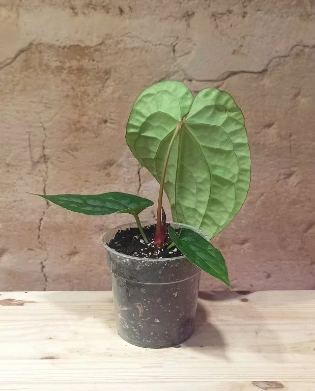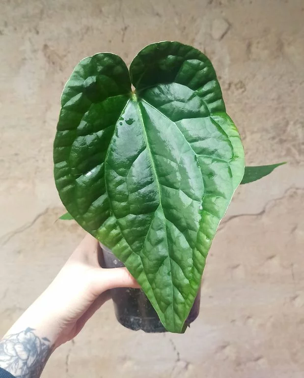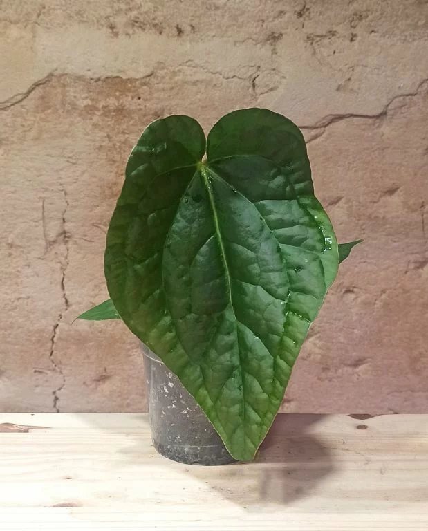 Née du croisement de l’anthurium regale et de l’anthurium luxurians, cette plante rare a hérité des meilleurs traits de ses deux “parents”. Ses grandes feuilles sont le parfait mélange de celles texturées et gaufrées du Luxurians, combiné aux nervures claires et aux feuilles allongées qui font le charme du Regale.