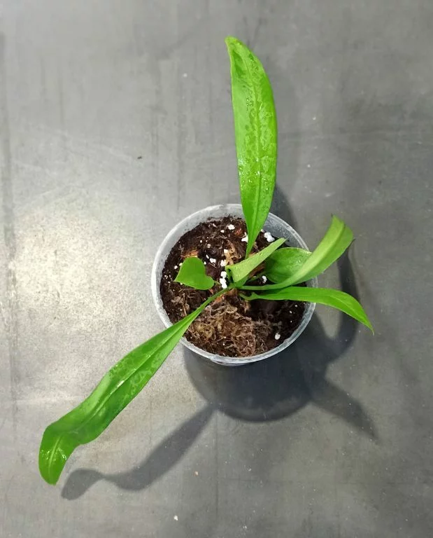 L’Anthurium Vittarifolium, originaire d’Amérique du Sud, est une plante tombante au feuillage imposant qui apprécie se suspendre aux arbres. Ses longues feuilles pendantes peuvent atteindre deux mètres de long.