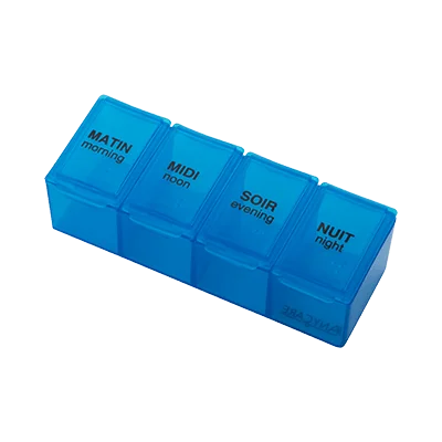 Un pilulier Anycare à 4 cases est un petit contenant conçu pour aider les personnes à organiser leurs médicaments et à s’assurer qu’ils prennent les bons médicaments au bon moment. Comme son nom l’indique, il comporte quatre cases distinctes, chacune étant destinée à un moment spécifique de la journée : matin, midi, soir et nuit.