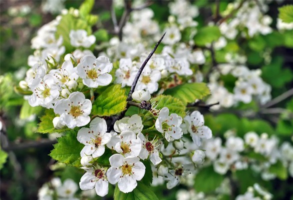 L’aubépine fleurit de début avril à fin mai. Ses fleurs sont blanches, réunies en grappes, sont toujours très parfumées. Leur taille est également très variable : de 2 – 3 mm à 2 cm de diamètre environ. Mellifères, elles offrent aussi de nombreuses vertus médicinales.