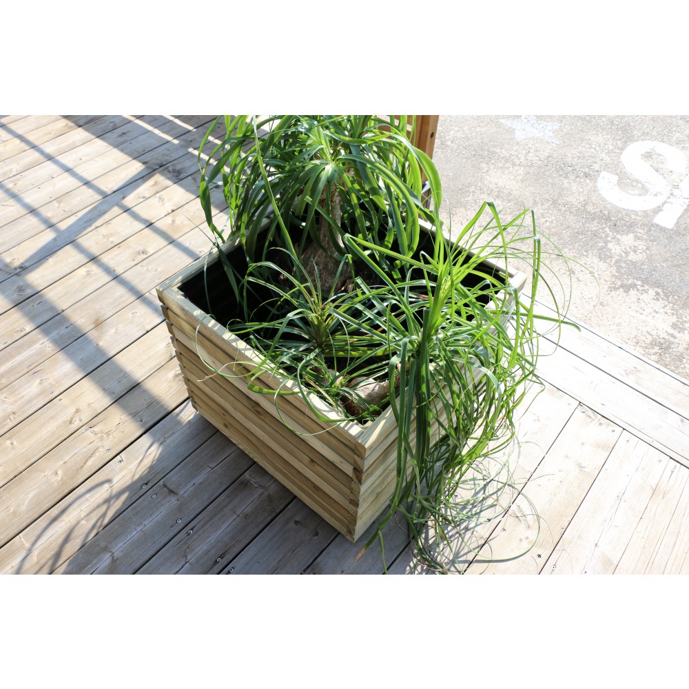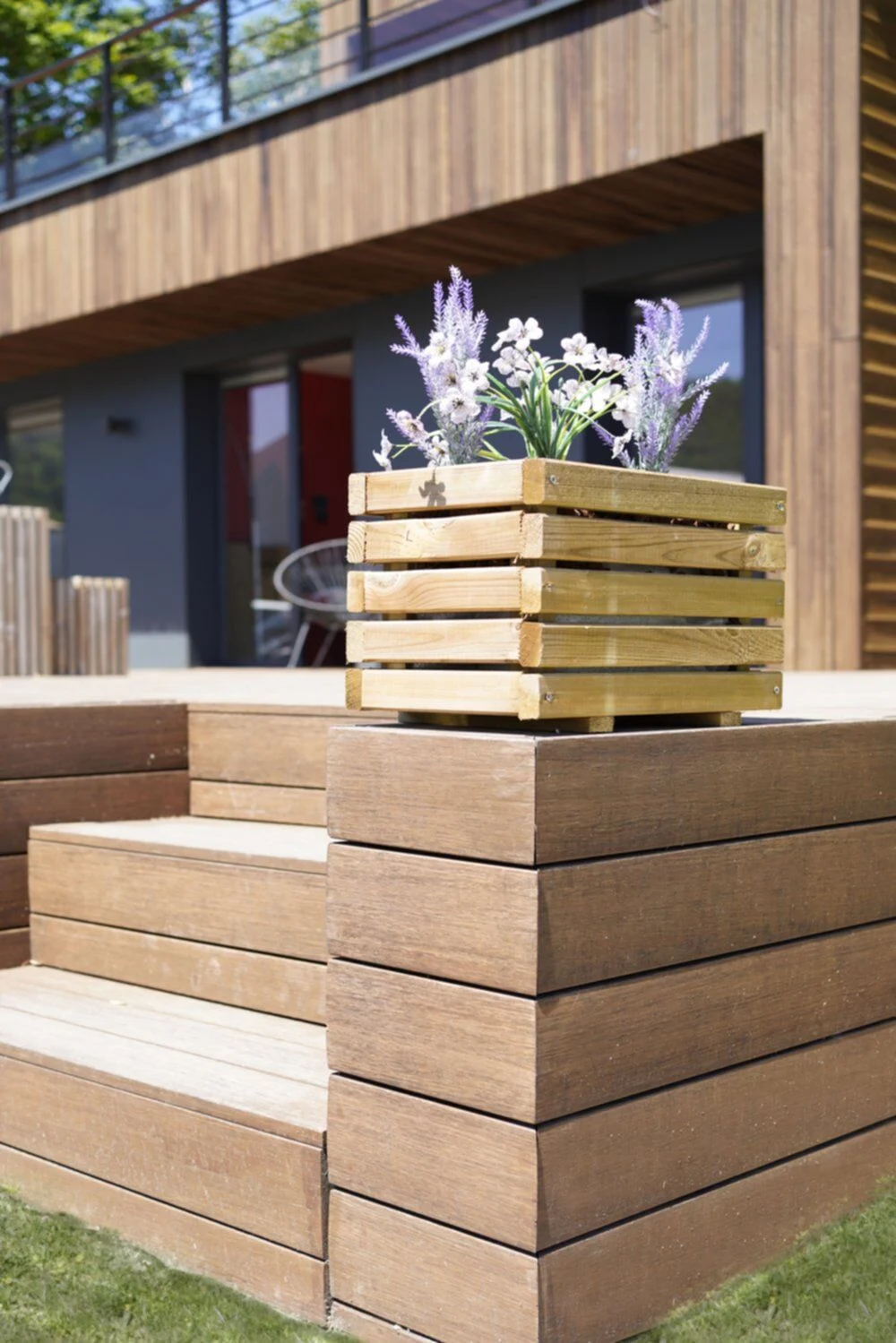 Le bois est du pin sylvestre traité autoclave classe 3 pour garantir une très haute résistance à l’humidité et aux alternances répétitives d’humidité et de sécheresse. Le bois est certifié FSC, garantissant la gestion responsable de la forêt d’où il provient. Les bacs à fleurs de la gamme KÜB sont conçus pour une durabilité maximale. Leurs lames en bois sont solidement fixées par des clous et des vis, garantissant une robustesse exceptionnelle. Équipés de pieds de 4 cm de hauteur, ces bacs assurent une stabilité parfaite, même sur des surfaces inégales. En plus de leur solidité, ces produits offrent un excellent rapport qualité / prix. Le bac à fleurs KÜB est livré avec un film de protection, assurant une bonne retenue du terreau et facilitant l’entretien de vos plantes. Vous pourrez y planter des fleurs de toutes sortes, créant ainsi un charmant assortiment floral ajoutant une touche de couleur vibrante à vos aménagements extérieurs. Pour une décoration encore plus harmonieuse, combinez plusieurs bacs à fleurs de la gamme KÜB dans différentes tailles. Cette composition variée ajoutera du dynamisme et une touche personnelle à votre jardin ou balcon, tout en maintenant une cohérence esthétique.
