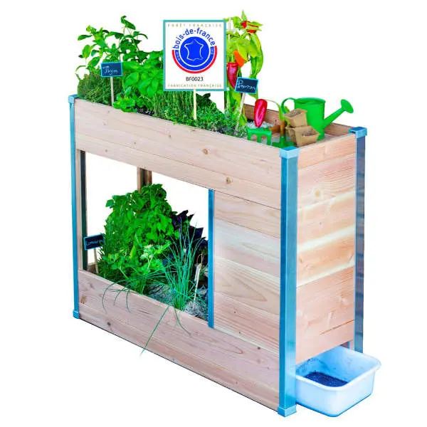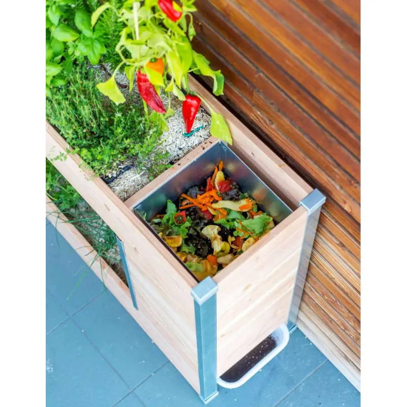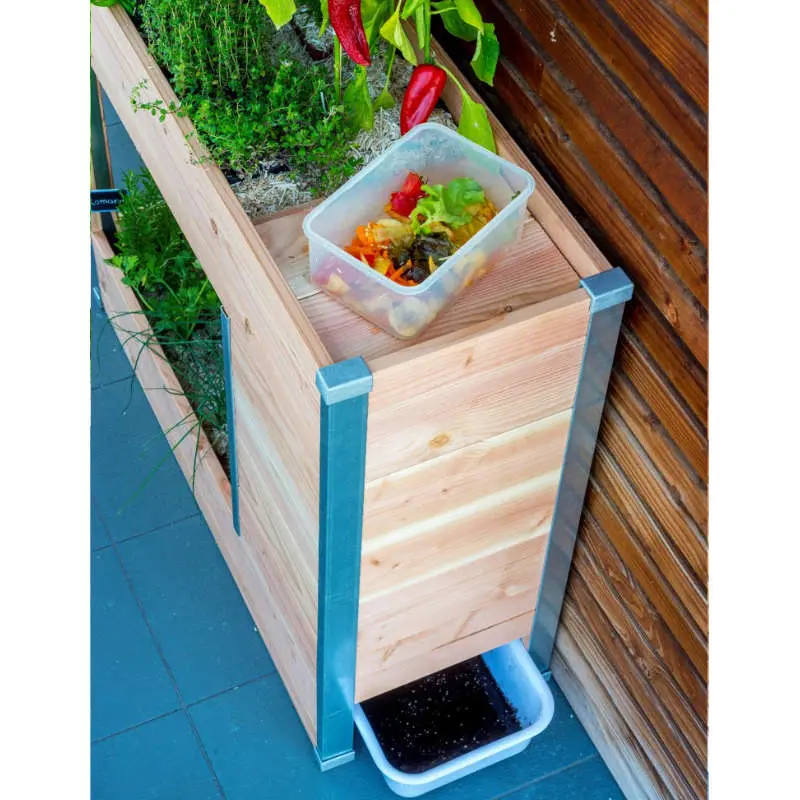 Le balcomposteur est une jolie jardinière en bois surélevée, composée deux 2 parties :