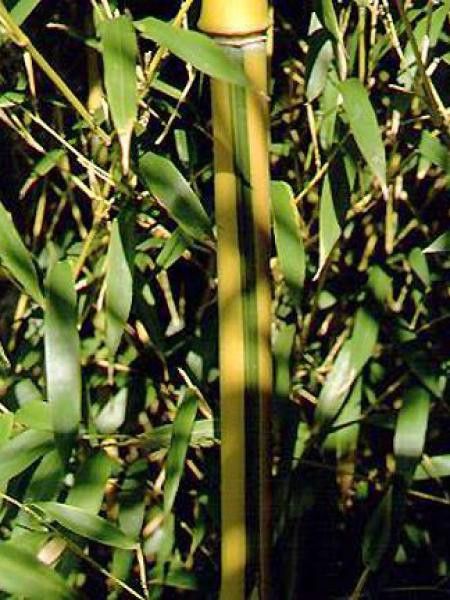 Offrant un bel écrin de verdure ce Bambou est bien rustique, il a des cannes épaisses, jaunes, marquées de cannelures vertes.
