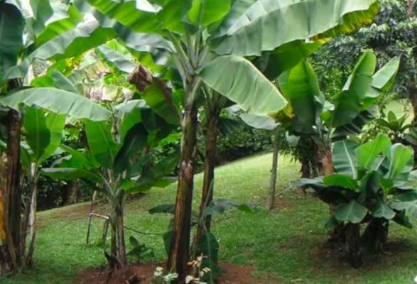 Les bananes arrivant rarement à maturité, pour ne pas dire jamais, le bananier est purement décoratif.