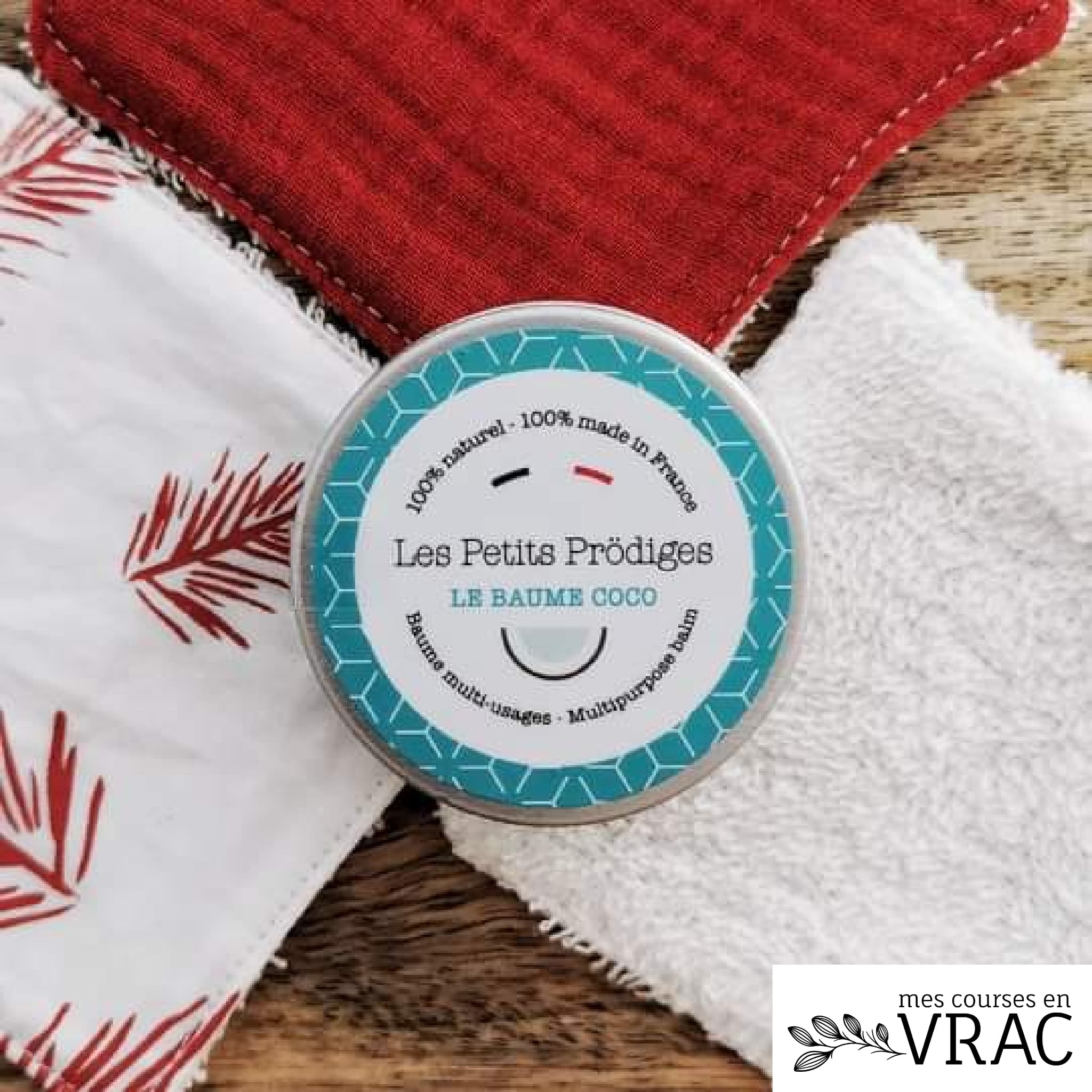 Ce baume solide parfumé à la coco est un baume à tout faire : visage, corps, cheveux. Il peut être utilisé en baume après-soleil tout comme en soin après rasage, bref, c’est l’allié à tout faire.