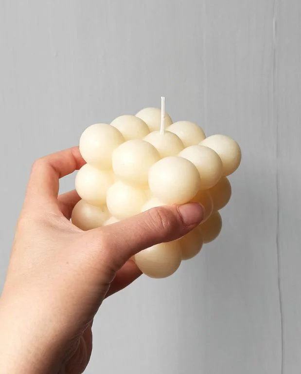 Vous cherchez une bougie unique et tendance pour embellir votre maison ? Découvrez notre bougie cube Bubble en forme de bulles et sans parfum qui saura satisfaire vos envies de décoration minimaliste et rétro.