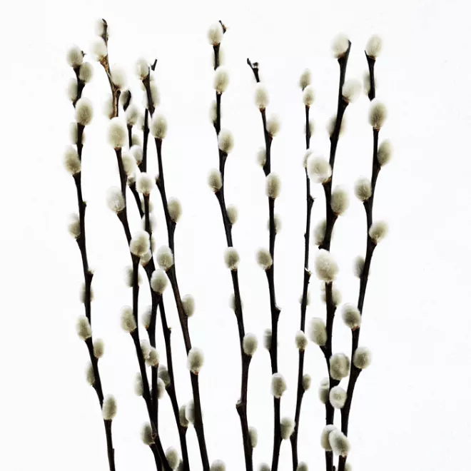 Le chaton de saule est un branchage qui comporte plusieurs petits chatons par branche.