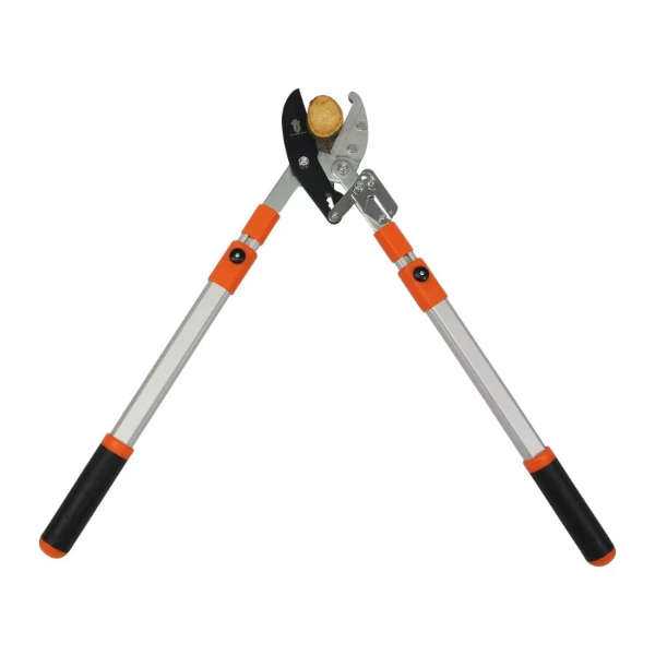 Le coupe branche à crémaillère possède deux manches télescopiques en aluminium, dont la longueur peut varier de 55 cm à 115 cm.