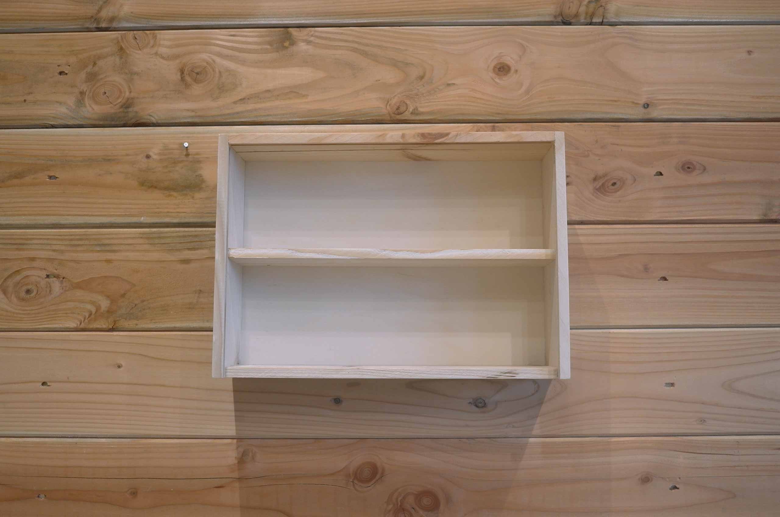 Etagère vide pour le rangement de vos boites à épices. Fabriquée à la main en France avec du bois français. Dimensions : 32 x 22cm
