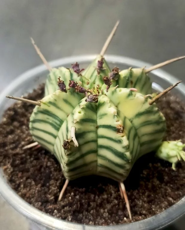 L’Euphorbia Meloformis Variegata se multiplie principalement par bouturage. Pour ce faire, coupez une tige saine et laissez-la sécher pendant quelques jours avant de la planter dans un substrat adapté. Assurez-vous que la coupe est propre et sèche pour éviter les infections.