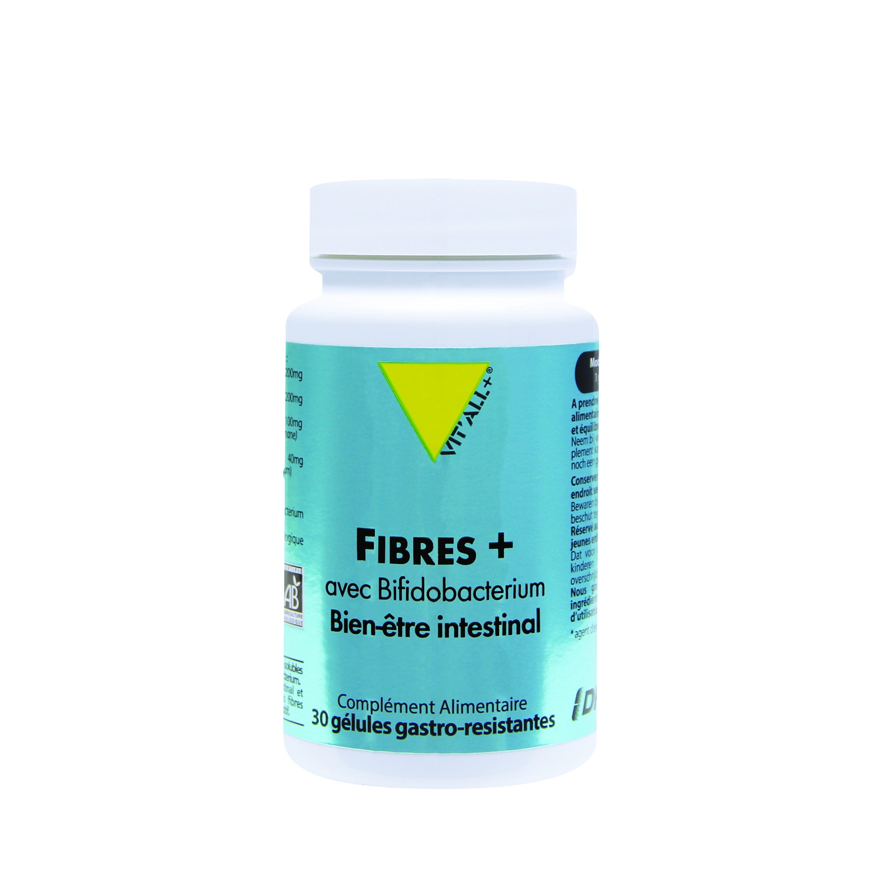 • Pour fournir des prébiotiques (fibres solubles bios) et des souches microbiotiques de type Bifidobactéries qui complètent parfaitement le FLORE VITAL® (qui contient lui des Lactobacilles)