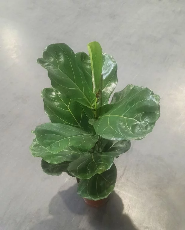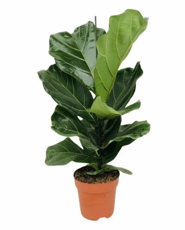 Le Ficus Lyrata se distingue par ses grandes feuilles vert foncé, nervurées, qui peuvent atteindre jusqu’à 45 centimètres de longueur. Elles ont une texture légèrement coriace et un bord ondulé, ce qui leur confère un aspect robuste et élégant à la fois. La couleur verte intense de ses feuilles, parfois marbrée de nuances plus claires, apporte une touche de fraîcheur et de modernité à tout espace.