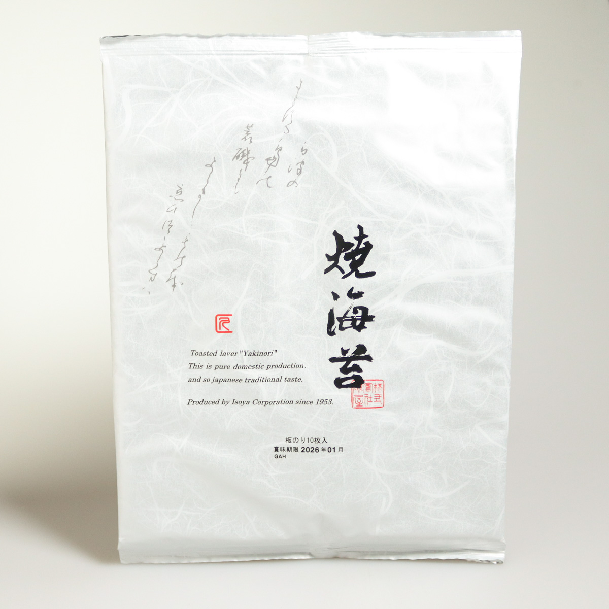 Founded in 1953, Isoya specialises in seaweed processing with the aim of producing Japanese nori of the highest quality. It now employs 70 people, some of whom collect seaweed from all over Japan and bring it back to Saitama Prefecture (about fifty kilometres north-west of Tokyo), where production was moved in 1988.