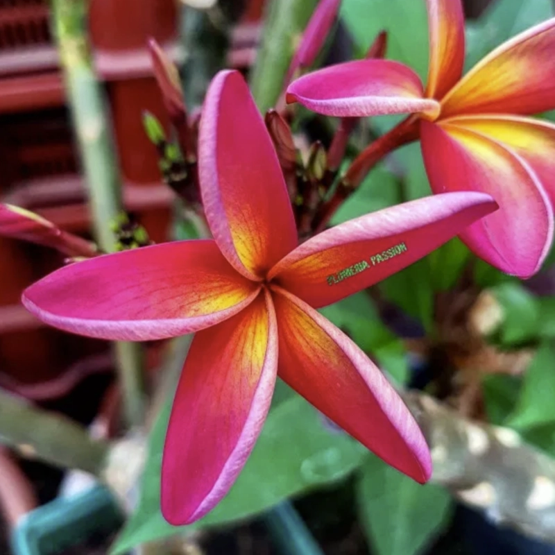 Ce frangipanier est cultivé par François, producteur passionné et gérant de « Plumeria Passion ». Plumeria est l’autre nom donné au frangipanier.