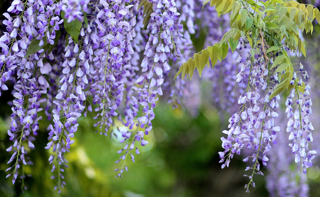 Wisteria Floribunda, plus communément appelée Glycine mauve est une plante grimpante qu’on ne présente plus. Fleurissant dès les premières semaines de printemps en grosses grappes de fleur de couleur mauve, la Glycine offre une croissance vigoureuse et sera idéale pour habiller mur, façades, portail,entrée. Aimant les expositions ensoleillées, et peu exigeante en entretien, la Glycine se cultive plutôt en pleine terre et si possible à l’abri du vent.
