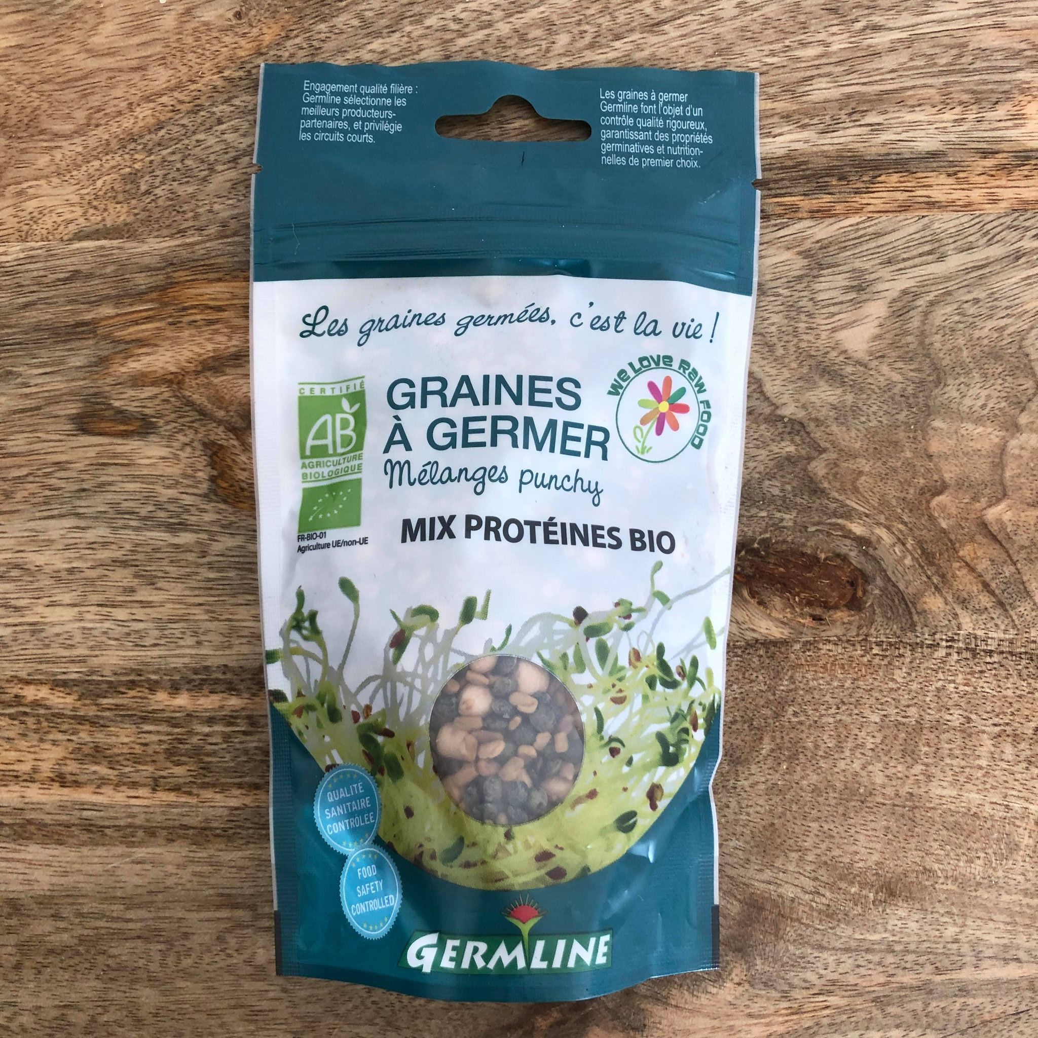 Ingrédients: 34% graines à germer de pois chiche (Cicer arietinum), 33% graines à germer de lentille verte (Lens culinaris), 33% graines à germer de fenugrec (Trigonella foenugraecum), issues de l’agriculture biologique.