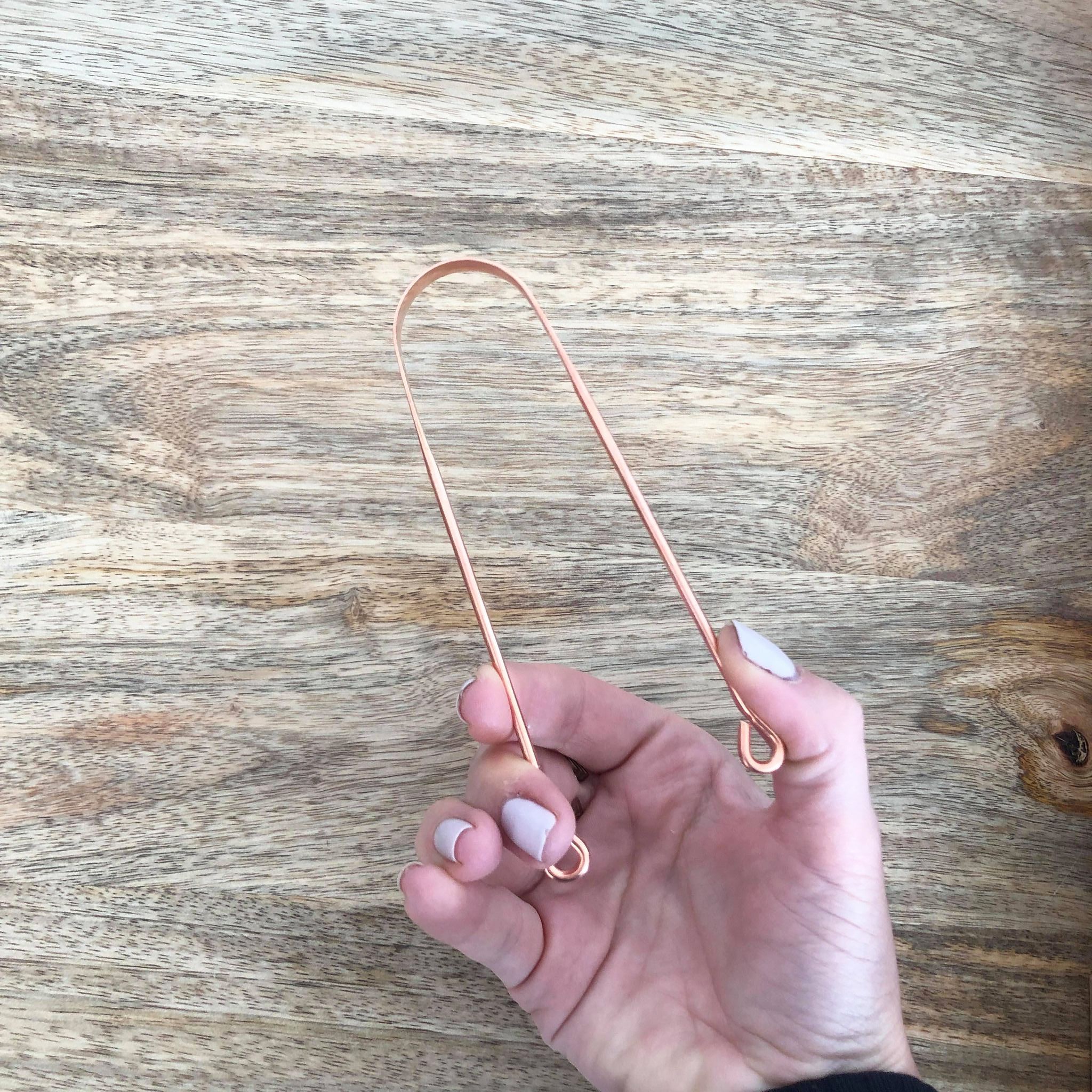 Originaire d’Inde, le gratte-langue en cuivre est idéal pour enlever les résidus blanchâtres présents sur la surface de la langue