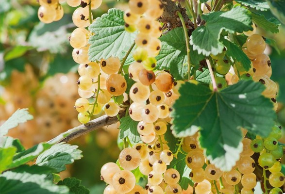 L’arbuste se couvre alors de nombreuses grappes de petites baies rondes et translucides, contenant des petites graines. La récolte se déroule au fur et à mesure de la maturation des fruits. La variété Blanka produit de longues grappes de fruits, à cueillir à partir de fin juin. Ses fruits de gros calibre sont juteux et légèrement acidulés.