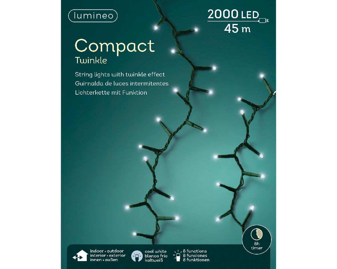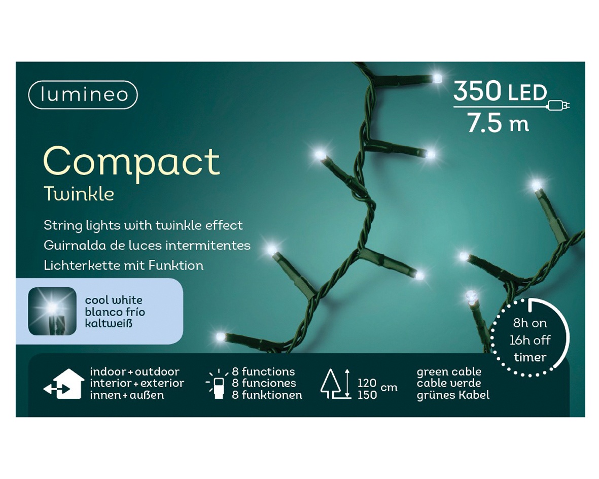 Illuminez votre sapin de Noël avec des lumières LEDS haute luminosité de couleur blanc froid*! Cette guirlande décorera votre maison pour les fêtes de fin d’année.