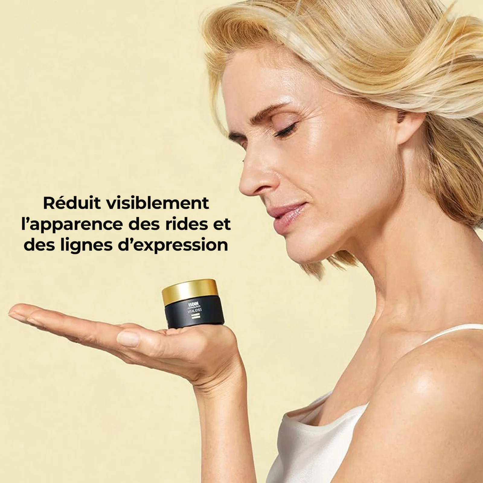 Prélevez une petite quantité d’ISDIN ISDINCEUTICS Vital Eyes crème sur le bout des doigts et appliquez sur la zone du contour des yeux.