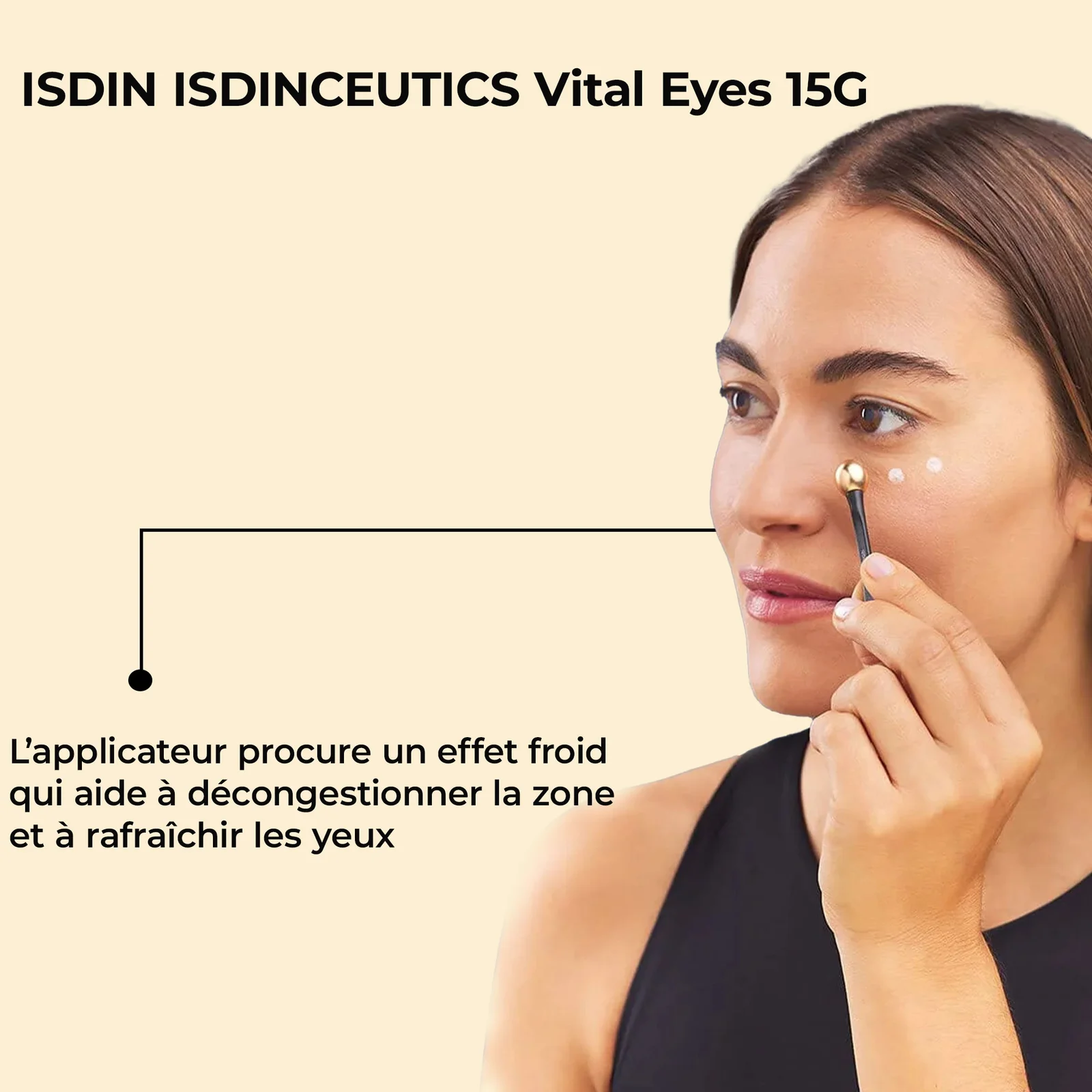 L’applicateur procure un effet froid qui aide à décongestionner la zone et à rafraîchir les yeux.