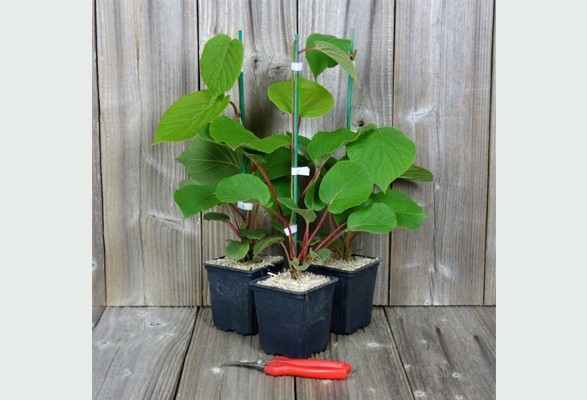 La variété autofertile à gros fruits ! Vigoureux et fructifère, le kiwi autofertile, Actinidia deliciosa ou Actinidia chinensis JENNY, produit de beaux kiwis savoureux et vitaminés en automne. Grand avantage, il est autofertile : un seul plant suffit ! Une aubaine pour les petits jardins, mais aussi les grands balcons ou les terrasses sur lesquels il pousse très bien en gros pot.