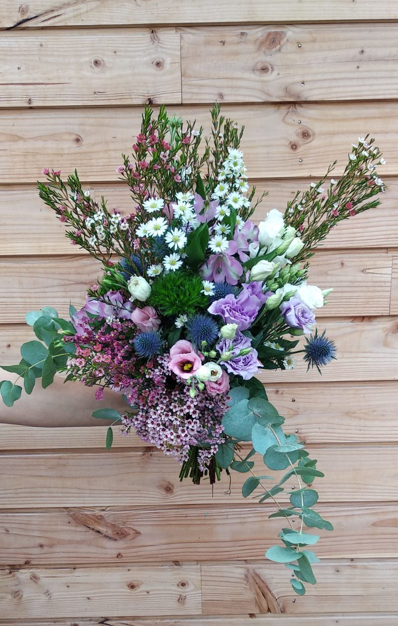 Adorable bouquet champêtre composé de fleurs fraiches de saison.