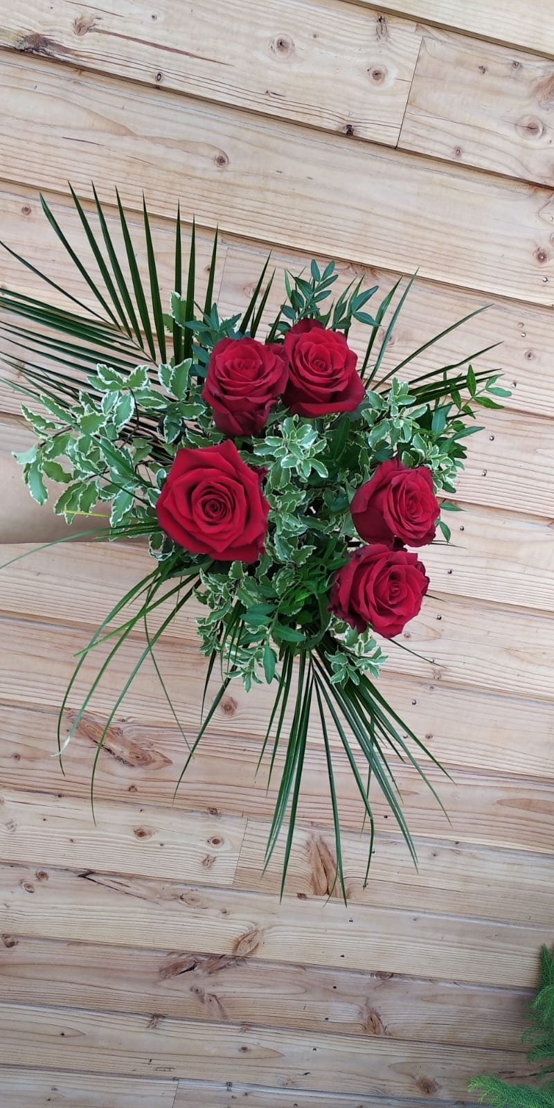 Bouquet de Rose (min 5 Roses) accompagné de verdure. Si vous souhaitez compléter votre bouquet avec une touche de blanc et du feuillage supplémentaire n’hésitez pas à rajouter à votre commande notre « petite verdure » disponible dans la rubrique fleurs fraiches.