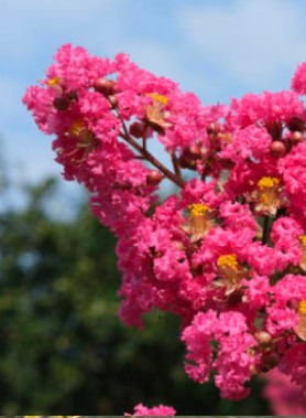 Son feuillage est caduc, il est bronze quand il est jeune puis vert foncé. Généreusement fleuri, il vous offrira de juillet à septembre d’impressionnantes grappes de fleurs rose intenses, qui rappellent celles du lilas.