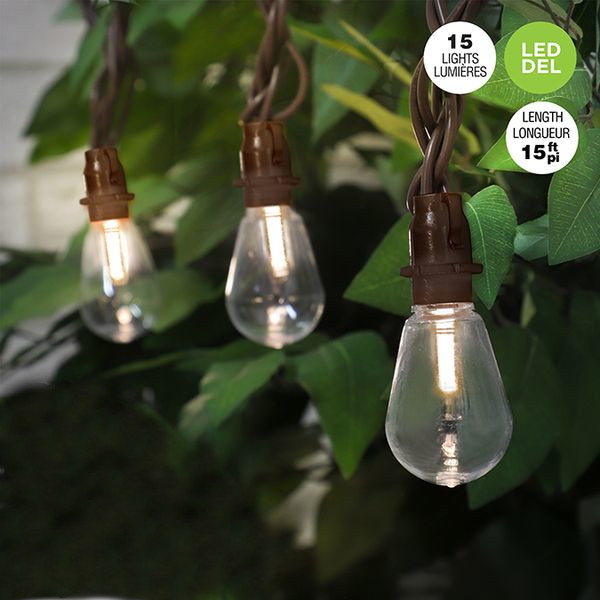 Jeu de 15 lumières avec ampoules Edison, del blanc chaud. 15 pieds de long.
