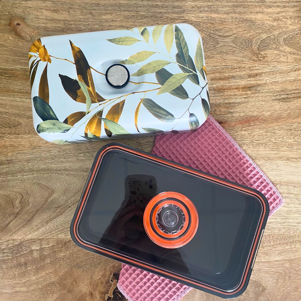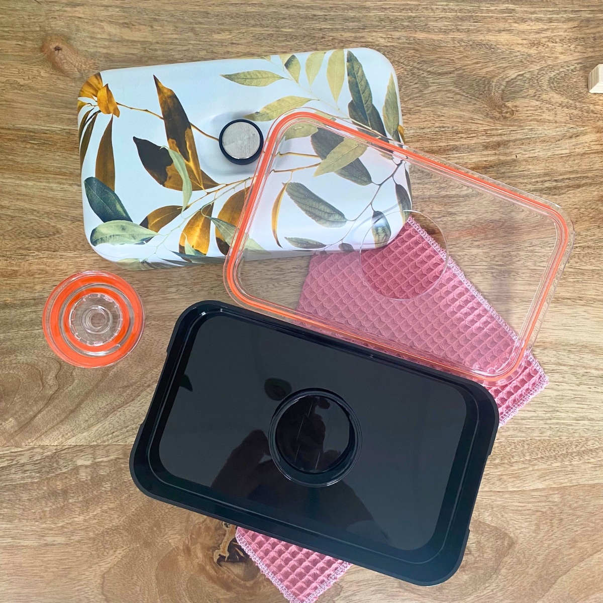 L’espace entre la lunchbox et le couvercle permet d’emporter du pain, une serviette des couverts ou autre petits snacks.