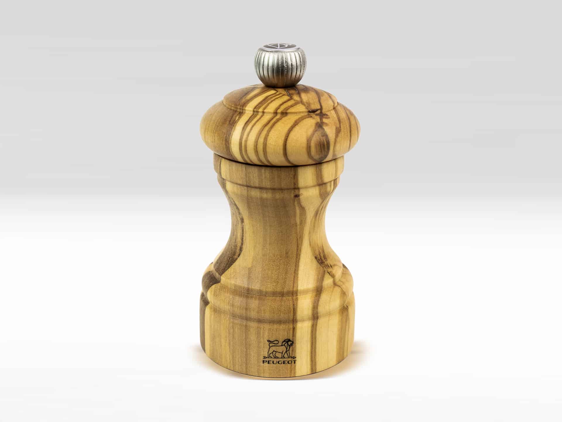 En olivier massif, le moulin Bistro est un objet familier une fois pris en main. Destiné à la mouture du poivre ce moulin est doté du mécanisme Peugeot qui depuis plus de 100 ans a fait ses preuves. Ce mécanisme permet de moudre facilement vos poivres et faux-poivres sans oublier les graines de coriandre, de cumin ou de fenouil.