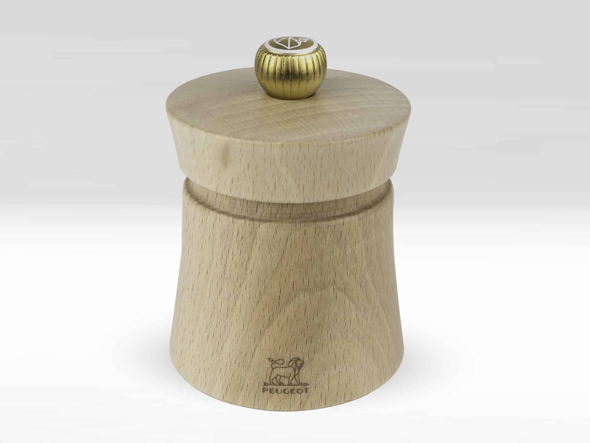 En hêtre massif, le moulin Bali est un objet étonnant une fois pris en main. Essentiellement destiné à la mouture du sel ce moulin est doté du mécanisme Peugeot qui depuis plus de 100 ans a fait ses preuves. Ce mécanisme permet de moudre facilement vos poivres.