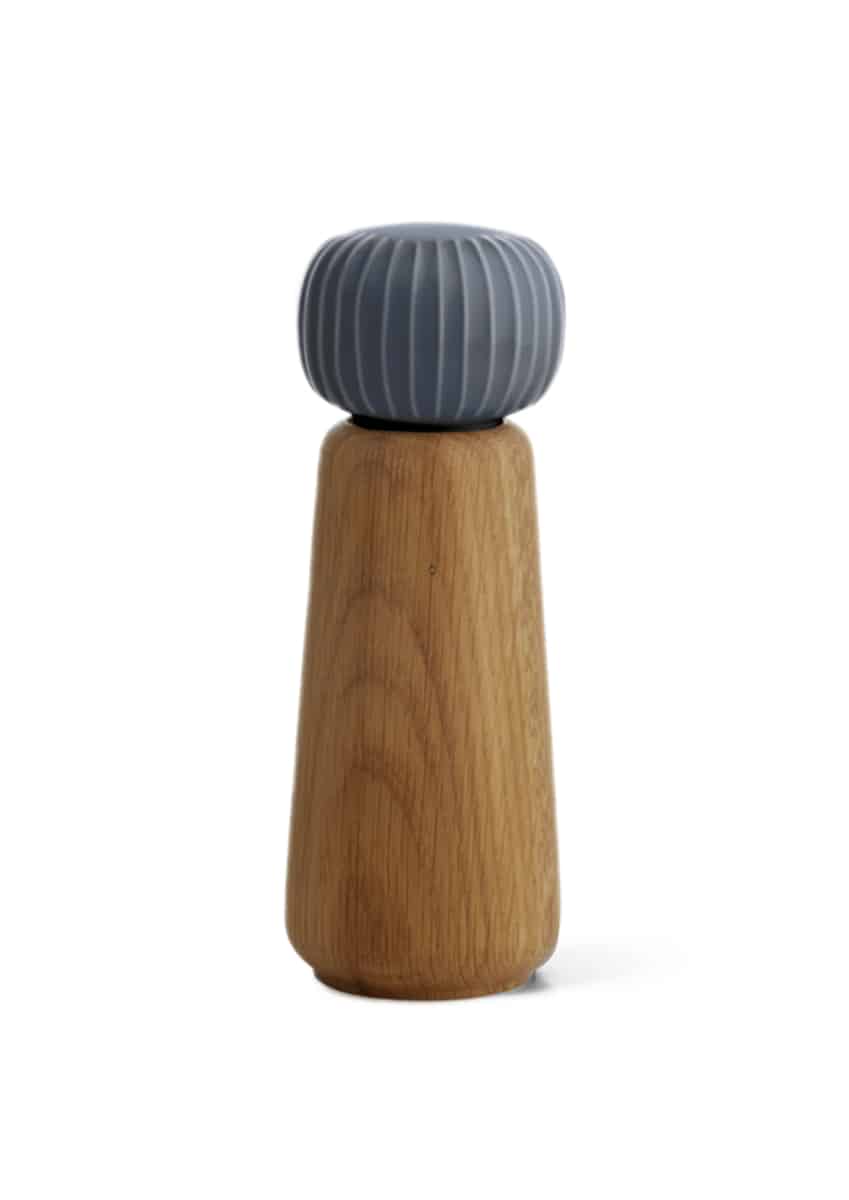 Créé par Hans-Christian Bauer pour Kähler, le moulin à poivre et à sel Hammershøi grand format (inspiré des créations traditionnelles de Svend Hammershøi) est en céramique gris anthracite et chêne huilé. Ses rainures et sa forme moderne lui confère une élégance folle tout en vous permettant une excellente prise en main.