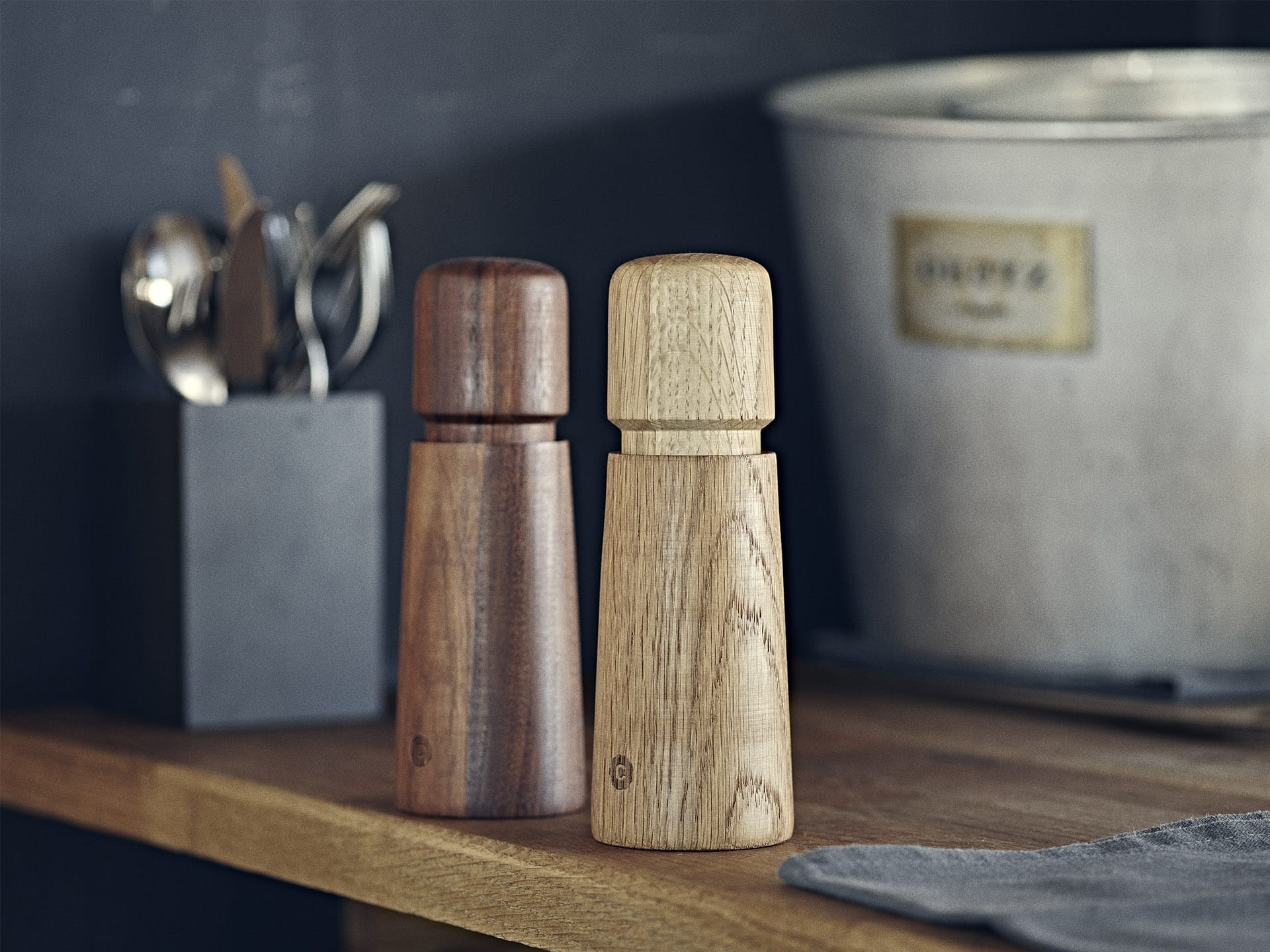 Moulin à poivre, sel et épices en chêne massif, le moulin Stockholm existe en plusieurs versions dont la magnifique version en bois et porcelaine.