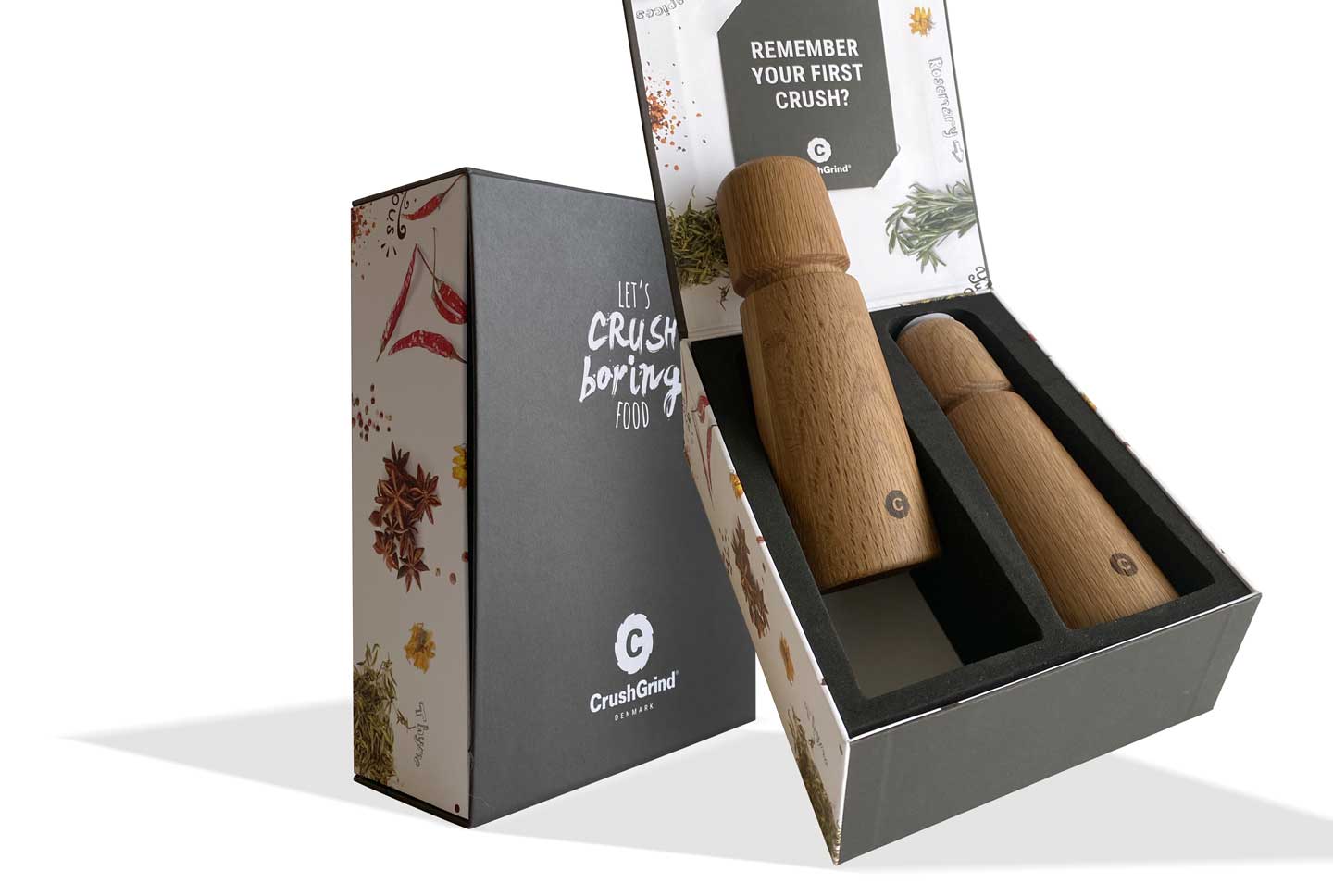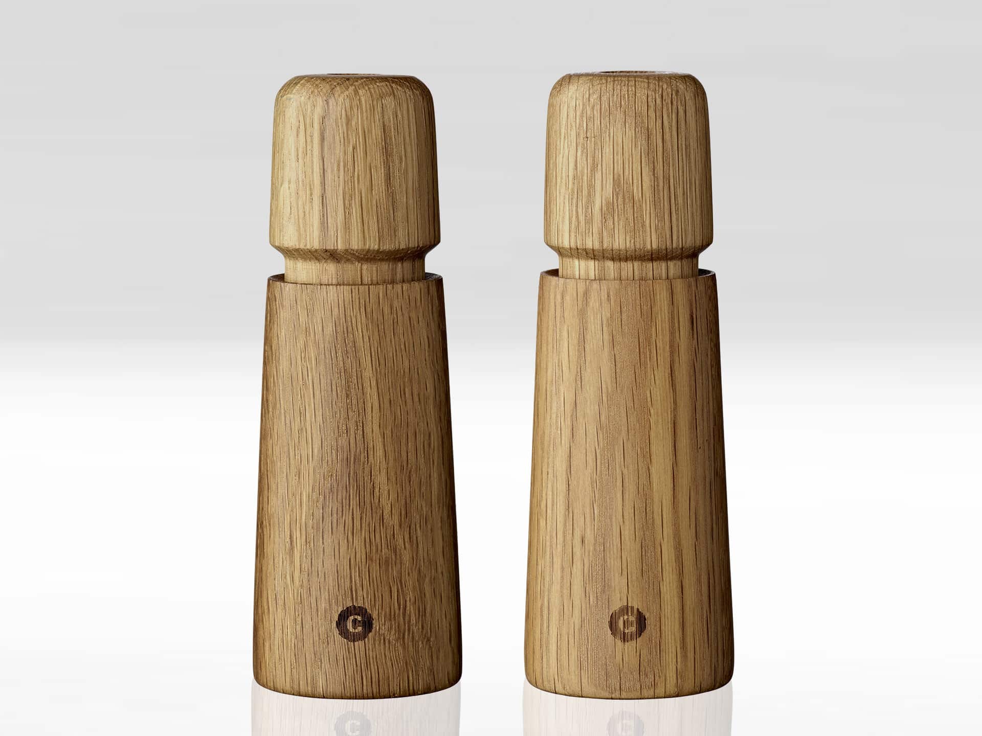 En chêne massif, le moulin Crushgrind est un objet étonnant de chaleur une fois en main. Que vous vouliez moudre du poivre, du sel (humide ou non), des épices, baies, graines ou herbes, le système Crushgrind® vous le permet. Ce mécanisme unique au monde permet au moulin à l’instar des mortiers d’écraser et broyer dans la même action.