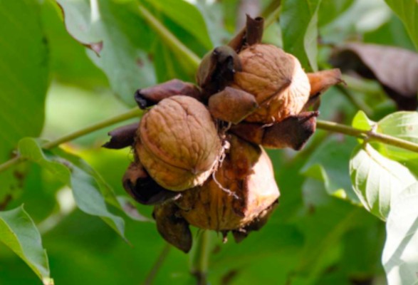 Les noix ; ce sont des drupes au péricarpe vert et charnu, recouvrant une coque dure, à l’intérieur de laquelle se trouve la graine à déguster à la fin de l’été, début de l’automne