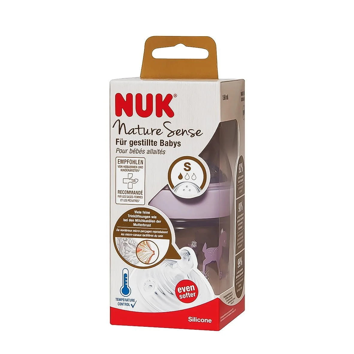 Le biberon NUK Nature Sense donne au tout-petit une sensation de boisson comme au sein de sa maman. La base élargie et souple de la tétine offre une sensation de succion naturelle dès que bébé y pose ses lèvres. 90 % des bébés acceptent sans problème NUK Nature Sense, en passent simplement de l’allaitement au sein à l’alimentation au biberon. Une aide indispensable pour les mamans qui méritent une pause, pour les papas qui souhaitent nourrir leur bébé, et lorsqu’il est temps de le sevrer.