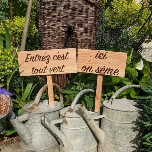 Ajoutez une touche de charme à votre jardin avec cette pancarte en bois gravée !