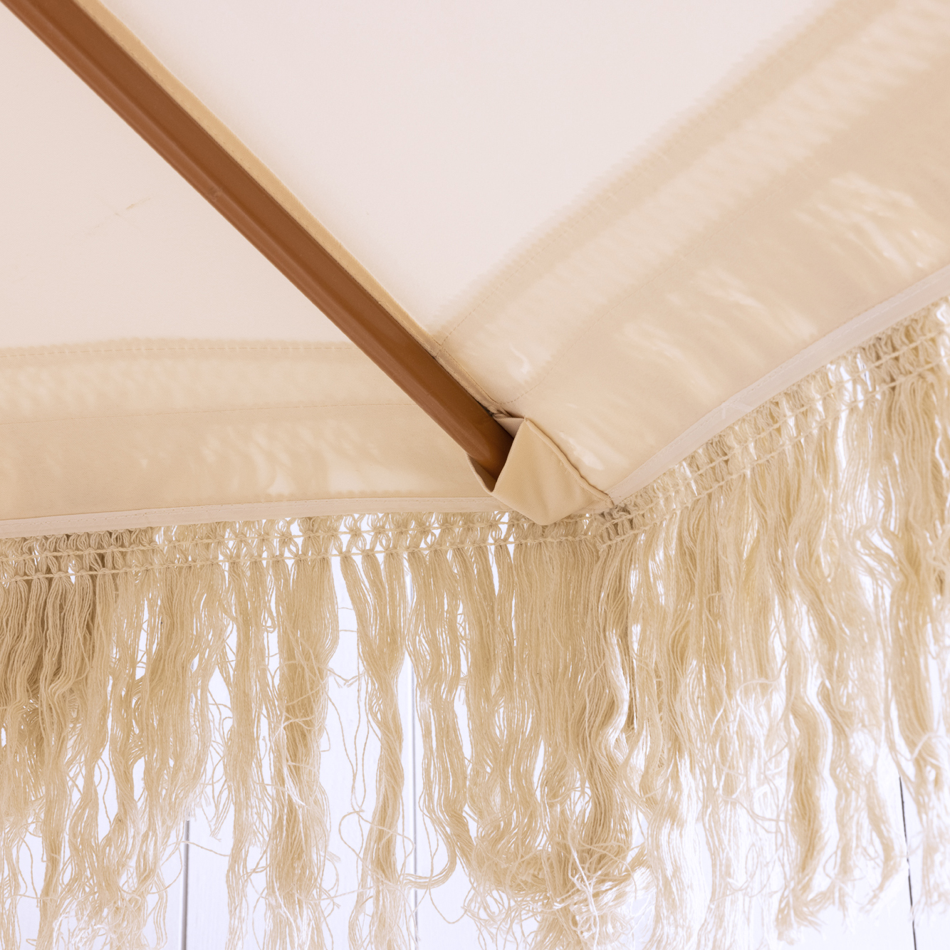 Ce parasol à franges est un accessoire indispensable pour les jardins ou terrasses. C’est une pièce décorative intemporelle qui offre non seulement une protection contre le soleil, mais ajoute également un look distinctif à votre extérieur.