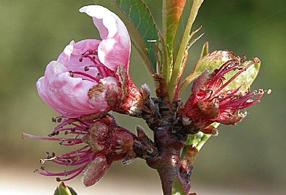 Sa floraison rose, tardive, survient en avril. Les fleurs sont hermaphrodites, et auto fertile.