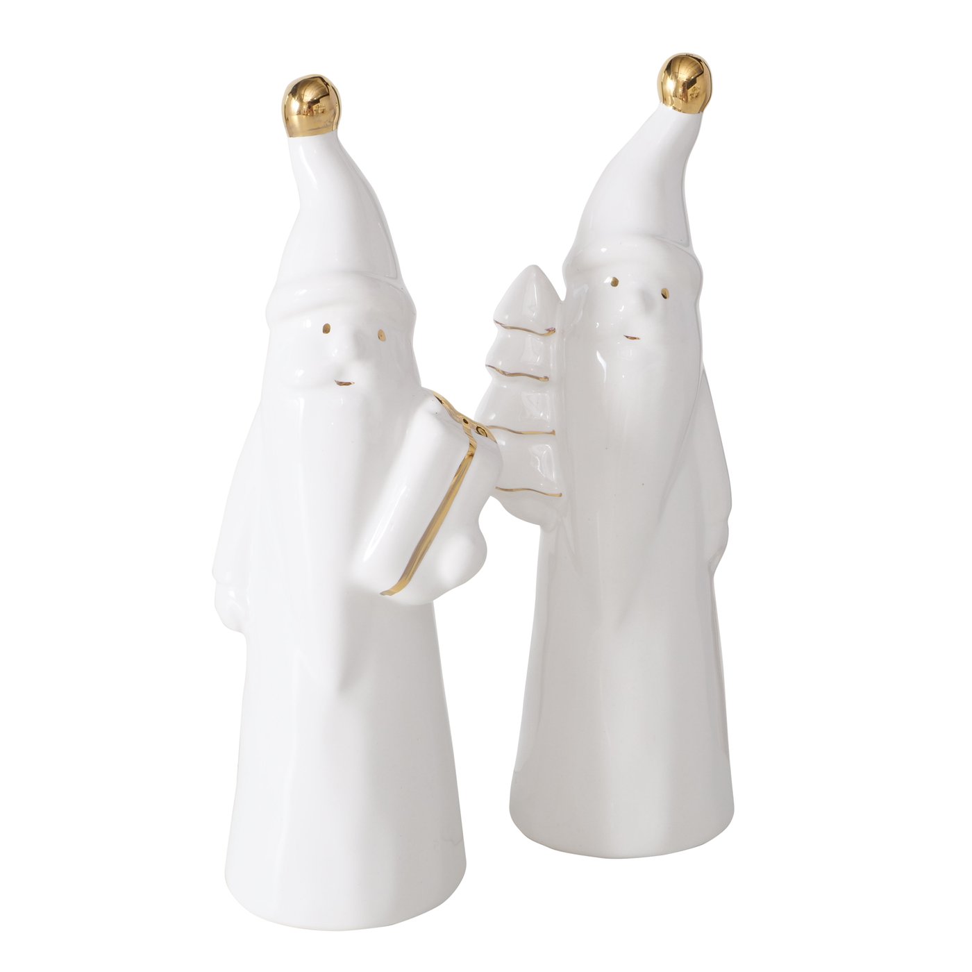 Père Noel stylisé en porcelaine blanche aux détails dorés, idéal pour une décoration de fête élégante et douce.