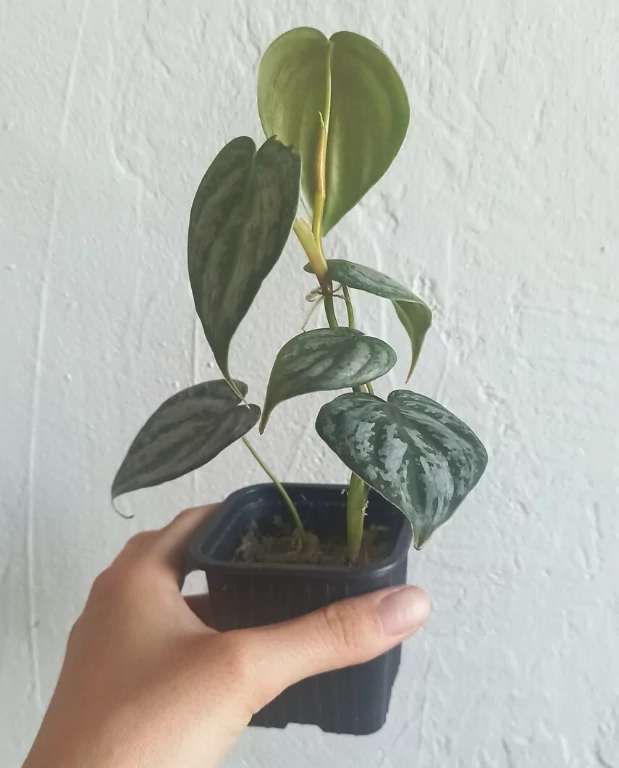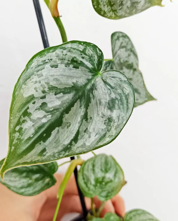 Le Philodendron Brandtianum, a des feuilles en forme de cœur et des reflets argentés. C’est une vraie grimpeuse qu’il faut tuteurer. Elle grandit vite et très facilement.