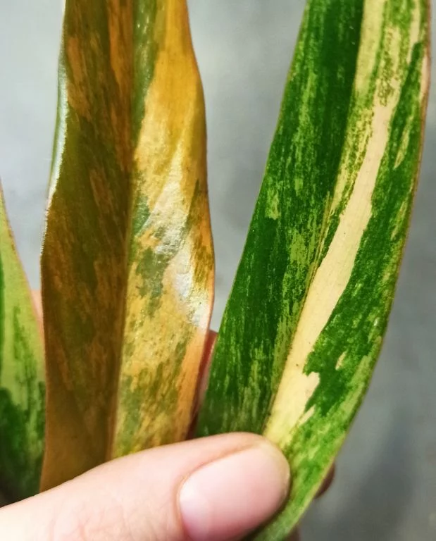 Si la lumière est trop faible, la panachure risque de s’atténuer et les nouvelles feuilles seront plus vertes que marbrées. Une lampe horticole peut être une excellente option en hiver ou dans une pièce peu exposée.